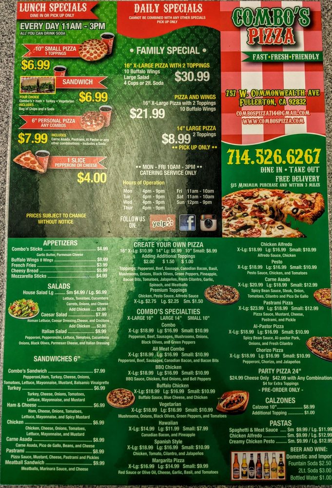 With exceptional service and an inviting ambiance, Combo’s Pizza promises a memorable dining experience that keeps customers coming back for more!